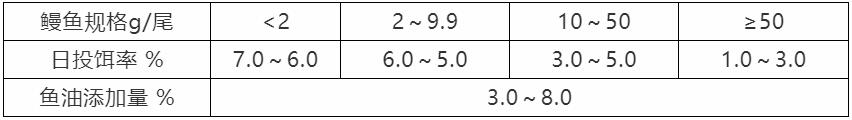 ? 根據(jù)存池鰻魚的規(guī)格及數(shù)量、氣候、水溫、水質(zhì)、鰻魚的生長及攝食狀況等因素進(jìn)行適當(dāng)?shù)卣{(diào)整。